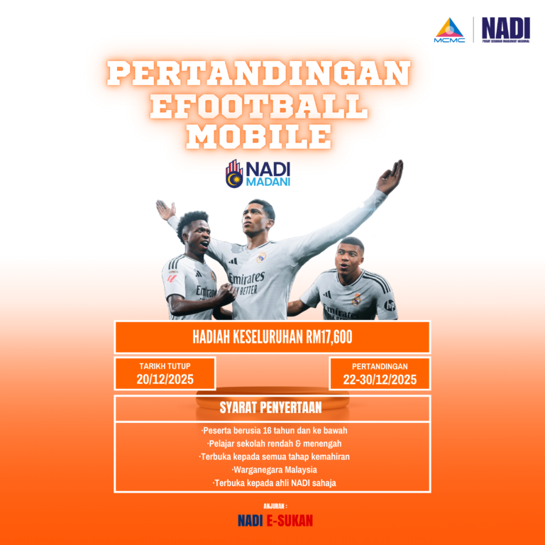 Tarikh 26 Disember 2025 Masa 8.30 pagi – 3.00 petnag Tempat NADI Taman Harmoni Peserta 2 Orang Tujuan: Mengisi masa cuti sekolah dengan aktiviti digital yang selamat dan bermanfaat, menggalakkan penyertaan remaja dalam e-sukan secara beretika, mencungkil bakat baharu eFootball […]