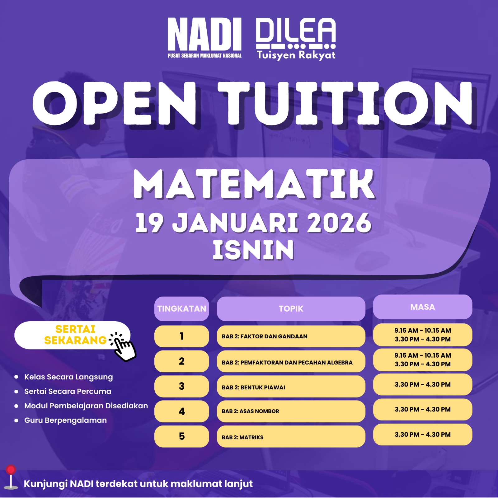 DILEA : OPEN TUITION MATEMATIK TINGKATAN 1,2, 3 & 4
